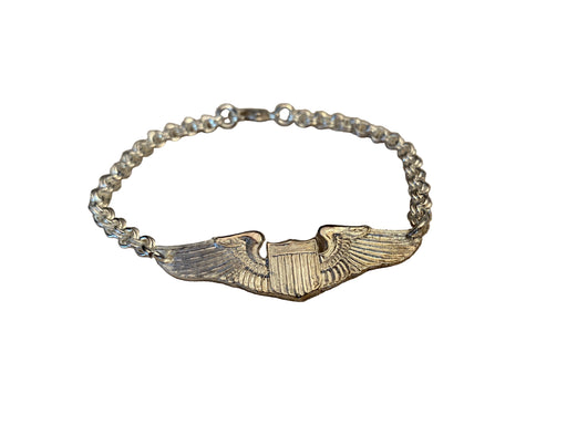 Reproduction du bracelet en métal avec la représentation du brevet de pilote de l’US Army Air Force. taille 21cm